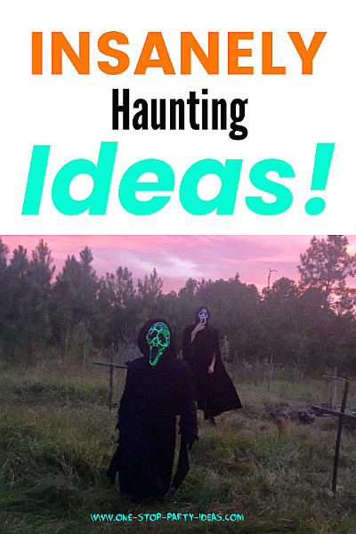Think spiders, bats, ghouls, and goblins. Then add a touch of horror where ever you can--hanging from the trees, peeking from the bushes or staging an unexpected hello that jumps out at just the right time.