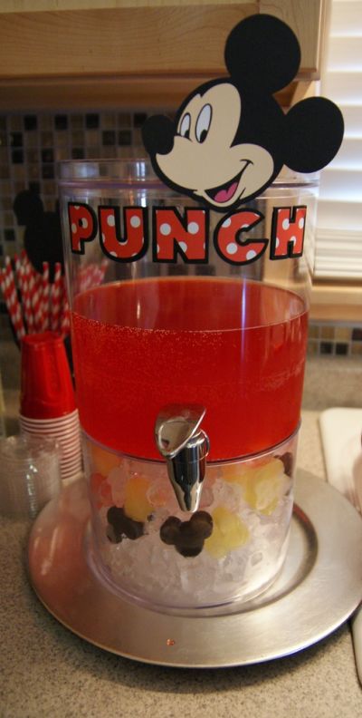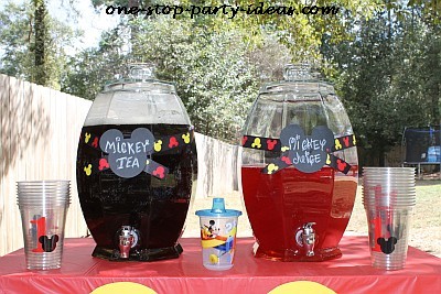 This decidedly Mickey punch presentation is the perfect way for kids to serve themselves. Here, the removable ice chamber provides the ideal way to show off Mickey themed ice cubes. A beverage dispenser is a must have party essential, since it can be redecorated to fit any theme.