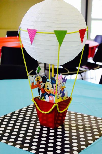Up, up, and away with Mickey and the gang. This hot air balloon centerpiece will have Mickey, Minnie, Daisy, and Goofy flying high and the kids excited to see the familiar faces of the whole gang.