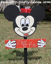 Give guests a sense of direction with festive signs to identity each party station. Mickey Mouse lingo says it best and here are some of our favorites. . .